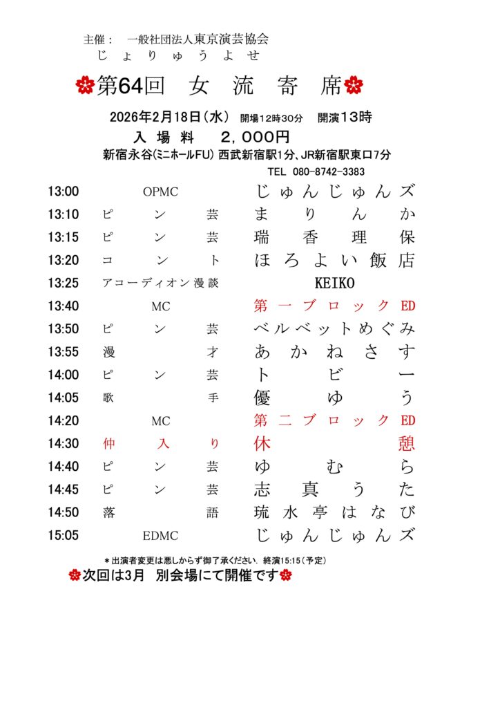 2026年2月18日(水)新宿Fu-「女流寄席」