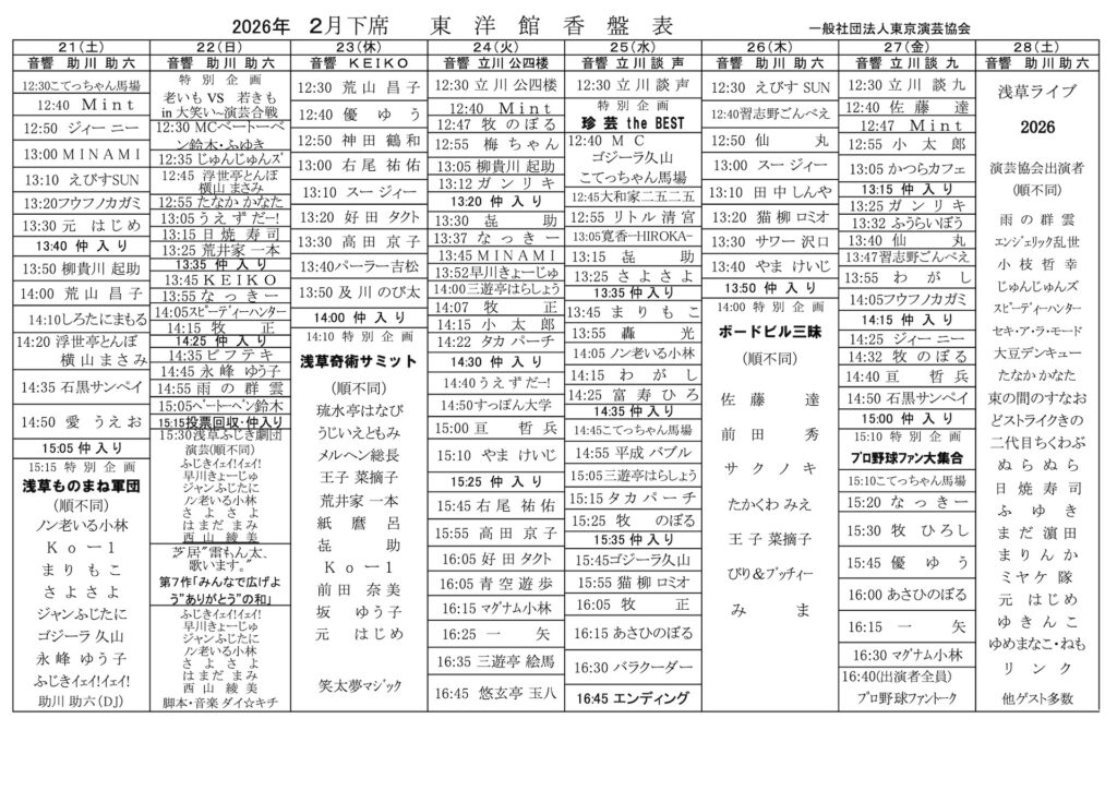 2026年2月 浅草東洋館 下席