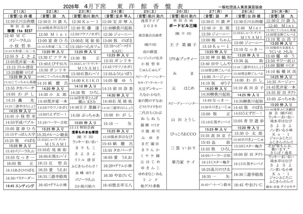 2026年4月 浅草東洋館 下席